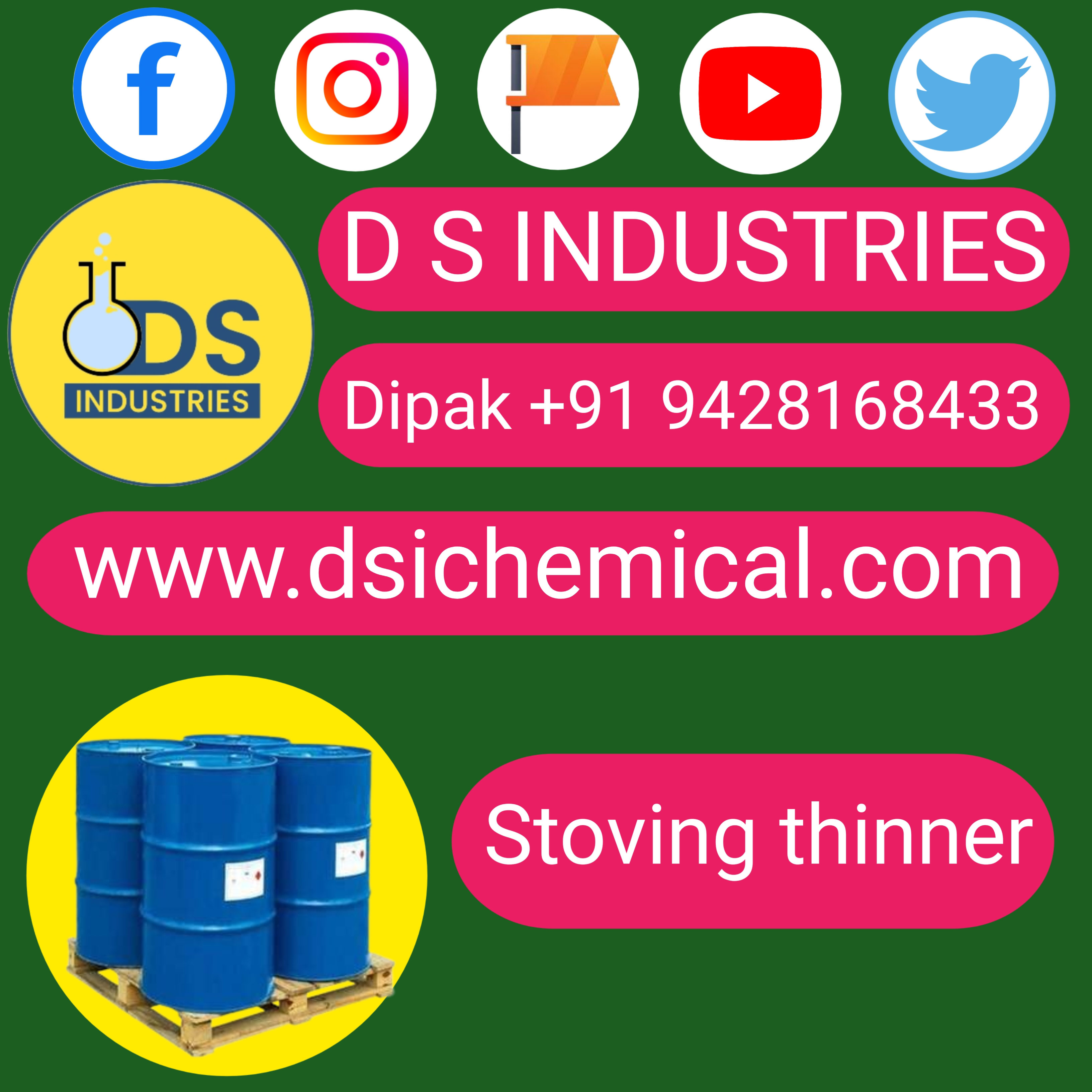 We Leading D S INDUSTRIES Stoving thinner manufacture in the Vadodara Gujarat india. D S INDUS:TRIES Accurate Stoving thinner delivery All Over india. "Stoving thinner" is a type of solvent commonly used in industrial and automotive painting. It is formulated to thin paint, lacquers, or varnishes to the desired consistency, making them easier to apply, especially in spray applications. Stoving thinners are particularly used in stoving or baking enamels, which are coatings that require heat to cure and harden. Here are some common uses of stoving thinner: Thinning Paint: It reduces the viscosity of stoving enamels, making them easier to spray or apply smoothly. Cleaning: It can clean painting equipment and tools, such as spray guns and brushes, removing residual paint. Surface Preparation: It helps in cleaning surfaces before painting, ensuring they are free of grease, oil, and other contaminants. Adjusting Drying Times: Depending on the formulation, stoving thinners can adjust the drying and curing times of the paint. When using stoving thinner, it is important to follow safety guidelines, such as working in a well-ventilated area, wearing protective gear, and handling it according to the manufacturer's instructions, as it can be hazardous due to its volatile organic compounds (VOCs). Key Word Stoving Enamel Paint Thinning Paint Cleaning Surface Prepration Adjusting Drying Times D S industries Stovin thinner D S industries Vadodara
