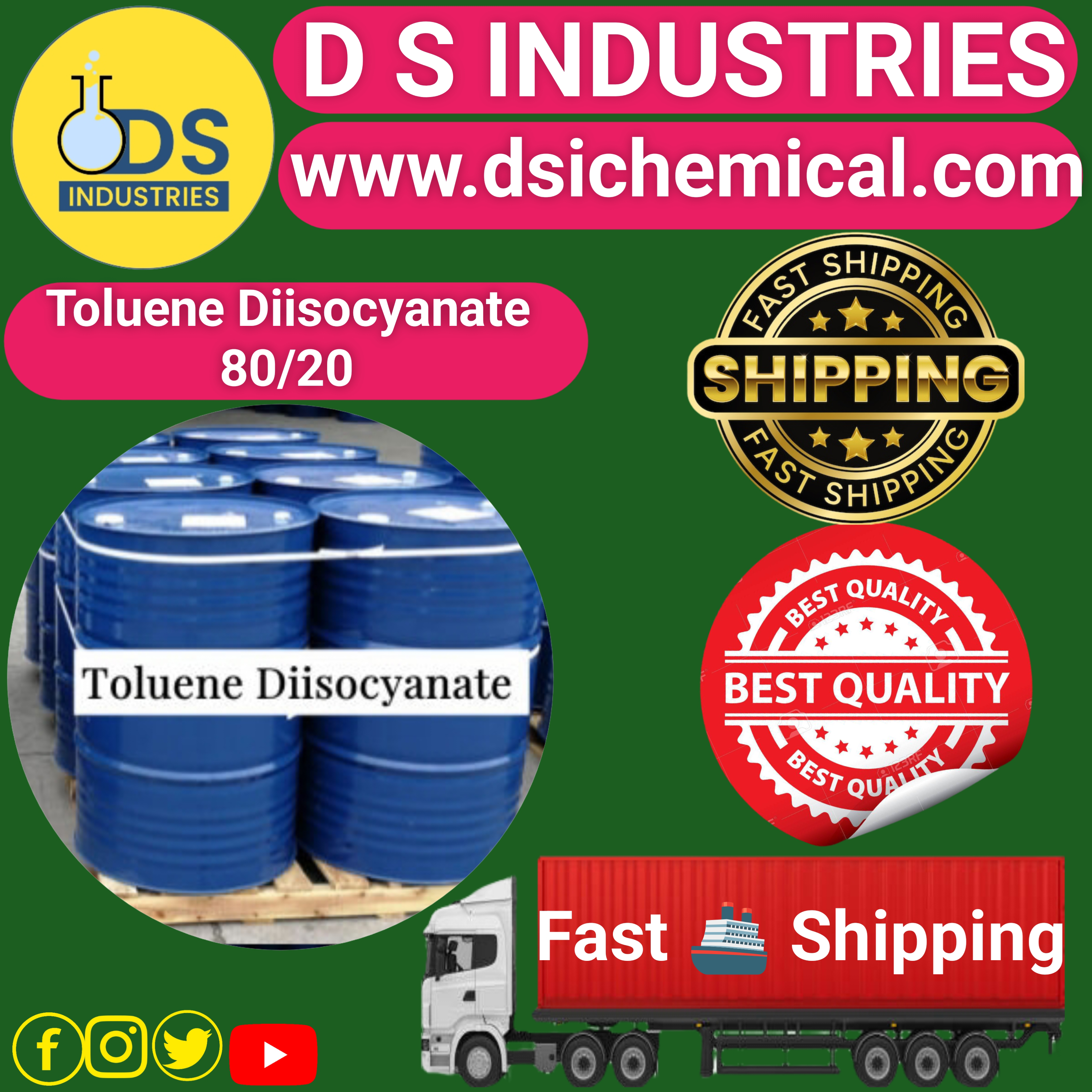 #We Leading #D #S #INDUSTRIES #TOLUENE #Diisocyanate #Best Supplier in #Vadodara #india. #D #S #INDUSTRIES #TOLUENE #Diisocyanate #Accurate delivery #ALL #Over. #Toluene #Diisocyanate 80-20 #(TDI 80-20) refers to a blend of two isomers of TDI, typically 80% of the 2, 4-TDI isomer and 20% of the 2, 6-TDI isomer. This specific blend is widely used in various industries, especially for producing polyurethane materials. The main applications include: Flexible Polyurethane Foams: TDI 80-20 is commonly used in the production of flexible foams for furniture (mattresses, cushions), bedding, and automotive seating. These foams provide comfort and durability. Polyurethane Coatings: TDI 80-20 is used in the formulation of polyurethane coatings for applications such as paints, varnishes, and protective coatings for surfaces like wood, metal, and concrete. Adhesives and Sealants: The compound is employed in manufacturing polyurethane adhesives and sealants, which are used in construction, automotive, and other industries where strong bonding materials are required. Rigid Foams: While TDI 80-20 is more commonly associated with flexible foams, it is also used to produce rigid polyurethane foams, often for insulation purposes in building materials and appliances. Elastomers: TDI 80-20 is used to create polyurethane elastomers, which are valued for their flexibility and resistance to wear. These are used in products such as gaskets, seals, wheels, and industrial components. Automotive Industry: Beyond seating foams, TDI 80-20 is used in various polyurethane components found in vehicles, including interior trims, headrests, and insulation parts. Footwear and Packaging: The blend is used to create lightweight, durable polyurethane soles for footwear, as well as in packaging materials where cushioning and insulation are needed. Given the reactive and toxic nature of TDI, including TDI 80-20, strict handling, safety measures, and environmental precautions are required in its use. #Key #words #Toluene #Diisocyanate #(TDI80-20) 80-20 Isomer Blend 2, 4-TDI Isomer 2, 6-TDI Isomer Polyurethane Flexible Foam Rigid Foam Coatings Adhesives Sealants Elastomers Polyurethane Foam Production Insulation Materials Automotive Seating Furniture Cushions Mattress Foam Footwear Soles Packaging Materials Industrial Components Toxicity Safety Precautions Chemical Reactivity Durable Materials Thermal Insulation Gaskets and Seals D S industries (TDI80-20) Supplier D S industries Vadodara india